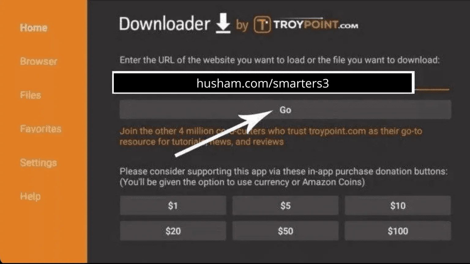16. Type the following URL exactly as shown here: https://www.iptvsmarters.com/smarters.apk